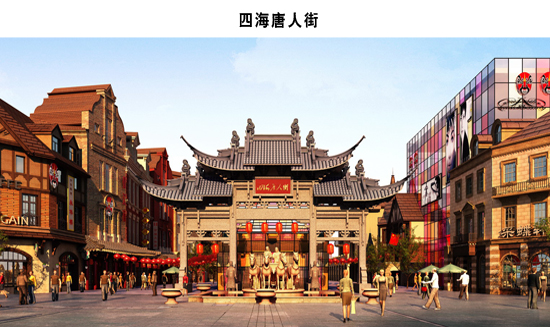 唐人街最早叫“大唐街”。1673 年,纳兰性德《渌水亭杂识》:“日本,唐时始有人往彼,而居留者谓之‘大唐街’,今且长十里矣。现在,唐人街遍及世界各个大中城市,作为中国文化在世界范围内传播的窗口,很大程度上代表着中国。在西安,创造一个唐人街的集大成项目,并使之成为西安的名片,正是我们要做的。只有各种传统、民俗文化的集合,才能多方位的展示真正的“唐人街”。