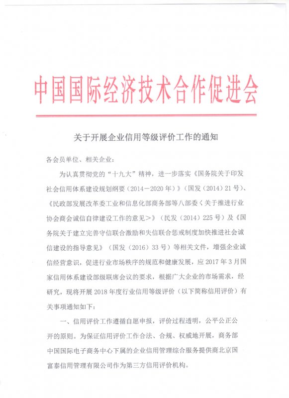 关于开展企业AAA级信用评价工作的通知