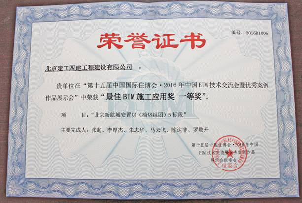 近日,北京新机场安置房工程各施工方应建设单位要求参加了“第十五届中国住博会2016年中国BIM技术交流暨优秀案例作品展示会大赛”,此次大赛分设计、施工、运维、综合、专项、教育、大学生、个人贡献组。北京建工四建新机场安置房项目部的参赛作品在全国数百家企业的932份参赛作品中脱颖而出,斩获施工组一等奖,据悉这是四建公司继荣获“2014年度中国建筑业建筑信息模型(BIM)邀请赛”二等奖后再次获全国大奖。